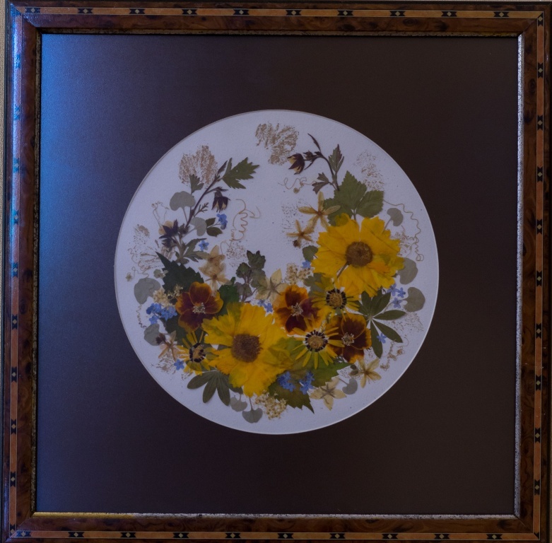 Марина соединяет в своих работах разные техники. Она рассказывает, что картины из цветов живут своей жизнью, меняются со временем – так, яркая летняя композиция постепенно блекнет, приобретая особую прелесть и благородство осени.