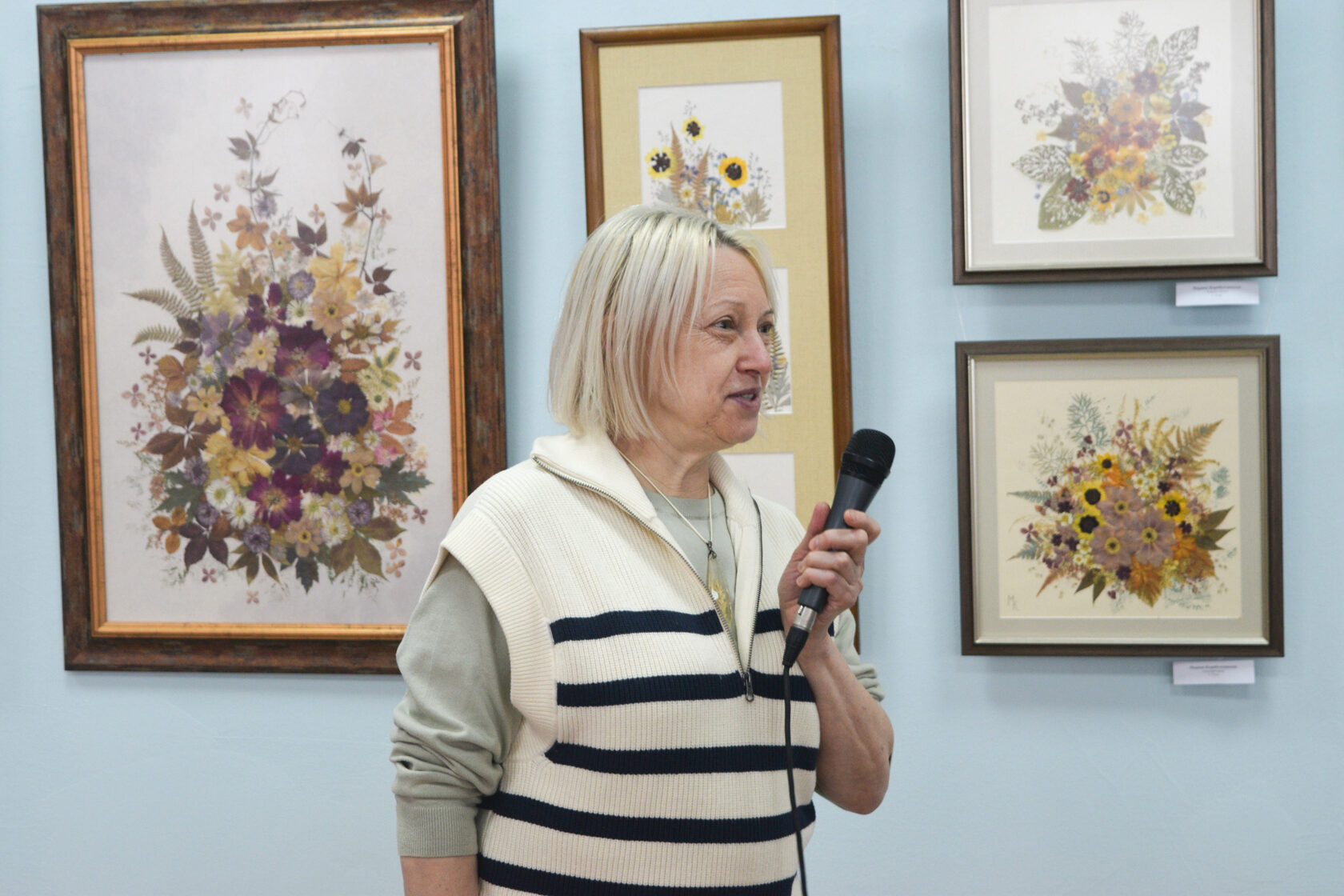 Участники выставки — настоящие мастера флористической живописи, проживающие в России: Марина Корабельникова (г.Тула), Татьяна Дацук (г.Санкт-Петербург), Вера Шулятьева (г.Йошкар-Ола), Марина Жмулевская (г.Москва), Людмила Солод (г.Москва), Владимир Лукьянов (г.Железногорск, Курская обл.), Татьяна Грызунова (г.Брянск), Ирина Саломатина (г.Брянск), Елена Прохорова (Белгородская обл.)
