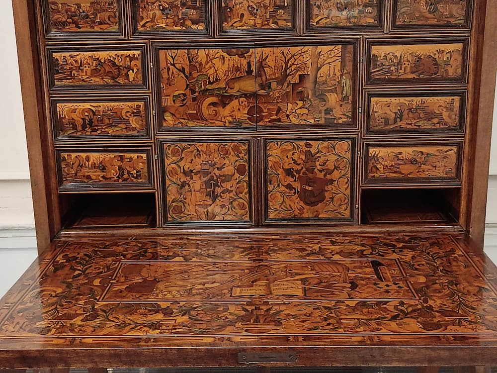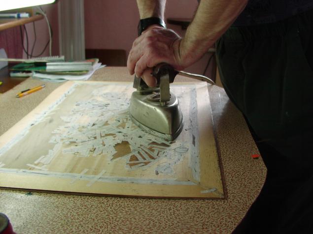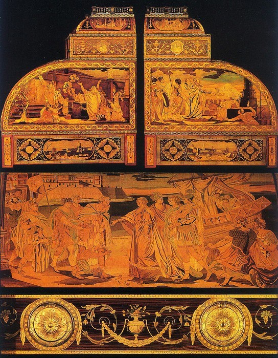 Превращенный в тонкие древесные пластинки – шпон, этот материал идёт на облицовку мебели и служит для создания композиций. Мозаичные композиции из шпона, наклеенные на основу, - это одно из направлений искусства маркетри.